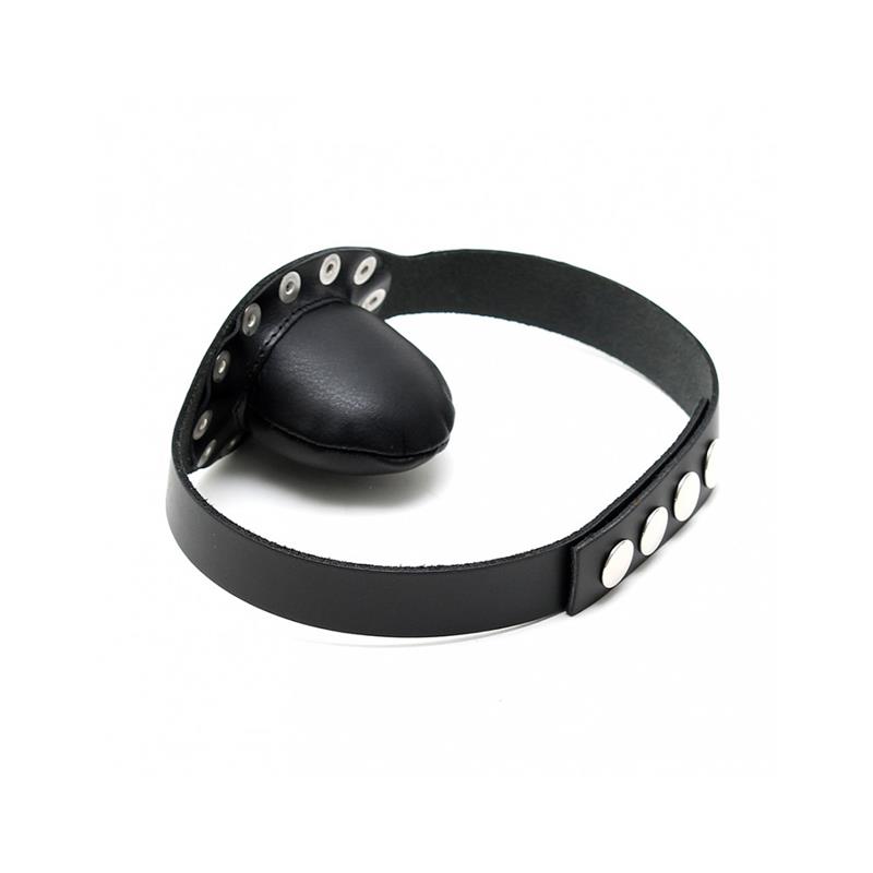 Mordaza de cuero ajustable con botones de presión en la parte posterior. La mordaza con forma de lengua esta hecha de cuero suave para mayor comodidad. Perfecto para vivir noches de BDSM sin límite.