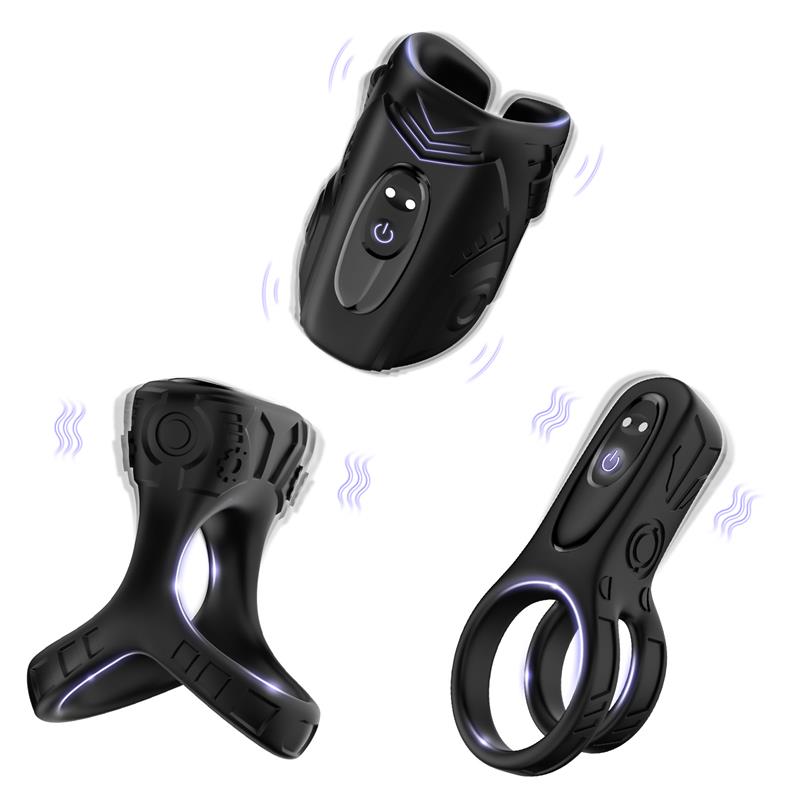 Dale un vuelco a tus sesiones de masturbación con este kit. Cuenta con un pequeño estimulador con 9 funciones de vibración y con 3 diferentes mangas para diferentes usos, un masturbador y dos anillos para el pene.