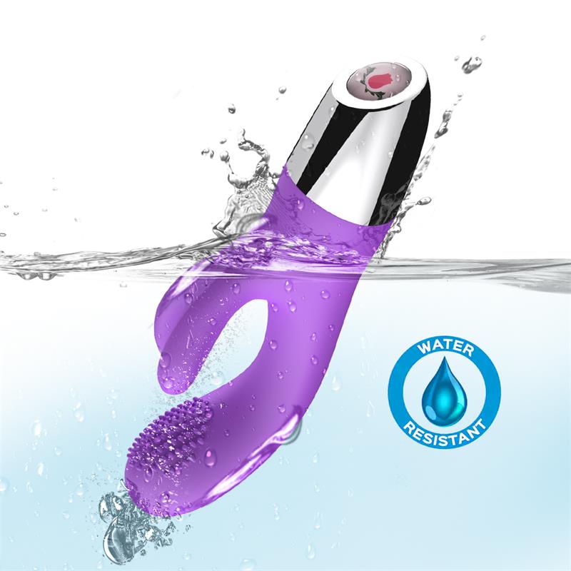 Un vibrador con características clásicas, pero con una forma pensada para el placer de todas nosotras. Cuenta con 9 funciones de vibración, una zona estriada y un estimulador de clítoris doble.